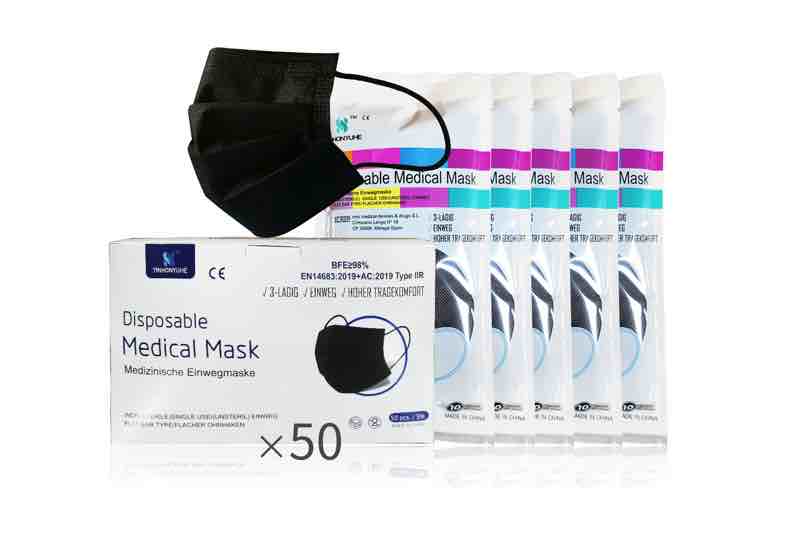 Zur Auswahl steht zunächst das klassische Blau, dazu kommen aber noch die Knallerfarben Lila, Rosa und Pink. Mögen Sie es hingegen eher schlicht, entscheiden Sie sich für Schwarz. Es eignet sich besonders gut für seriöse Berufe, wo Sie sich schützen und gleichzeitig professionell auftreten möchten. Der Komfort kommt nicht zu kurz, denn dank der Größe von 17,5 x 9,5 Zentimetern sitzt der OP-Mundschutz hervorragend und schneidet nicht ein. Die langen Ohrenschlaufen garantieren, dass sich die OP Masken medizinisch farbig Typ IIR nicht bewegen.
